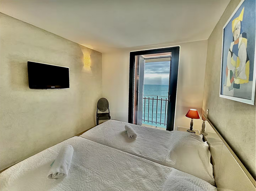 Cette maison traversante de 50 m², complétée par une buanderie, bénéficie d’une belle luminosité naturelle tout au long de la journée. Au rez-de-chaussée, vous accédez à une entrée desservant une salle d’eau moderne avec douche à l’italienne, vasque, WC et rangements. Un escalier vous mène ensuite à l’espace de vie composé d’un séjour, d’une cuisine équipée et d’un coin repas, le tout ouvert sur un balcon de 2 m² offrant une vue splendide sur la mer. La chambre indépendante, d’une superficie de 9 m², dispose également de son propre balcon sans avancée avec vue directe sur la mer, pour des réveils inoubliables face à la Méditerranée.