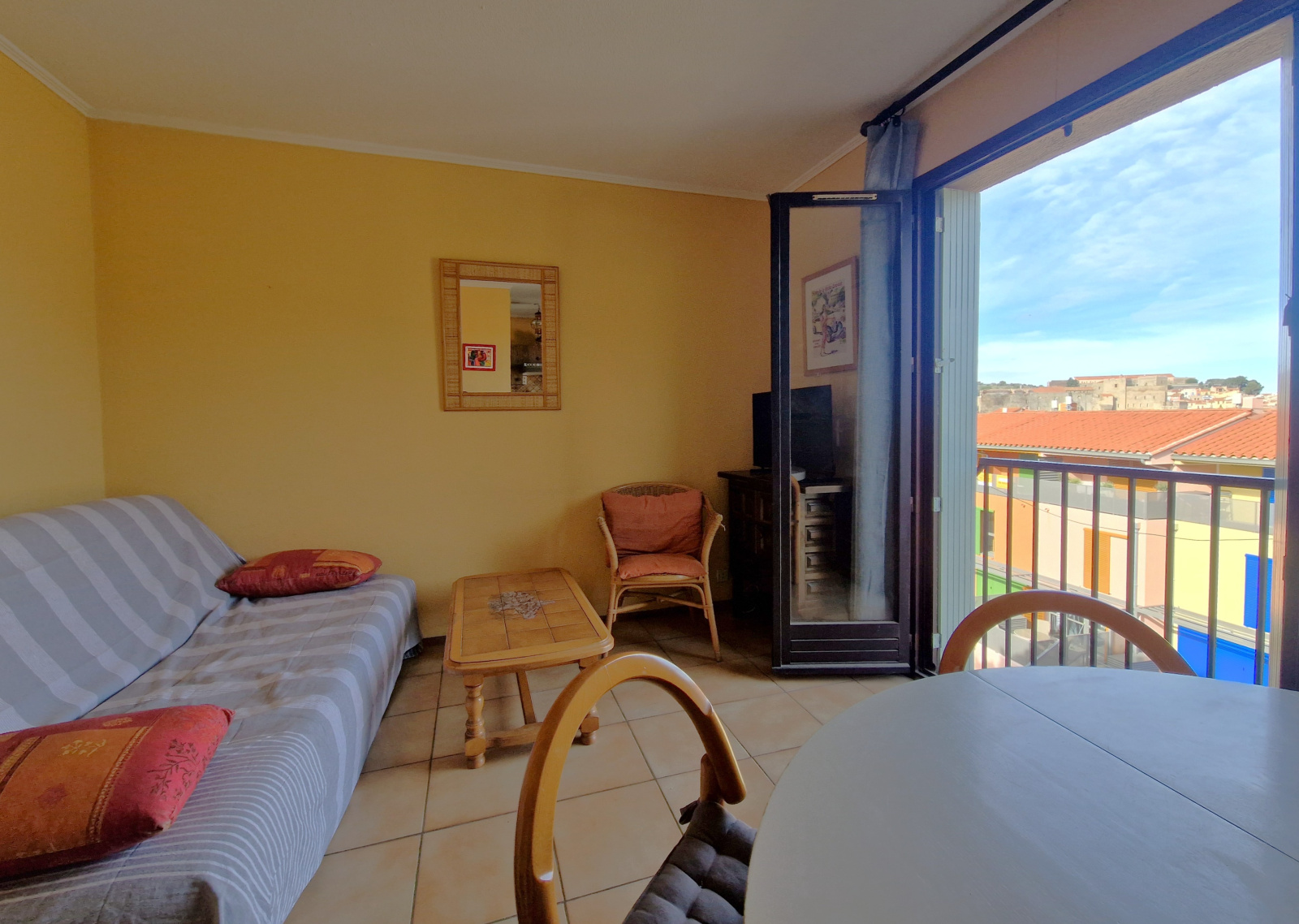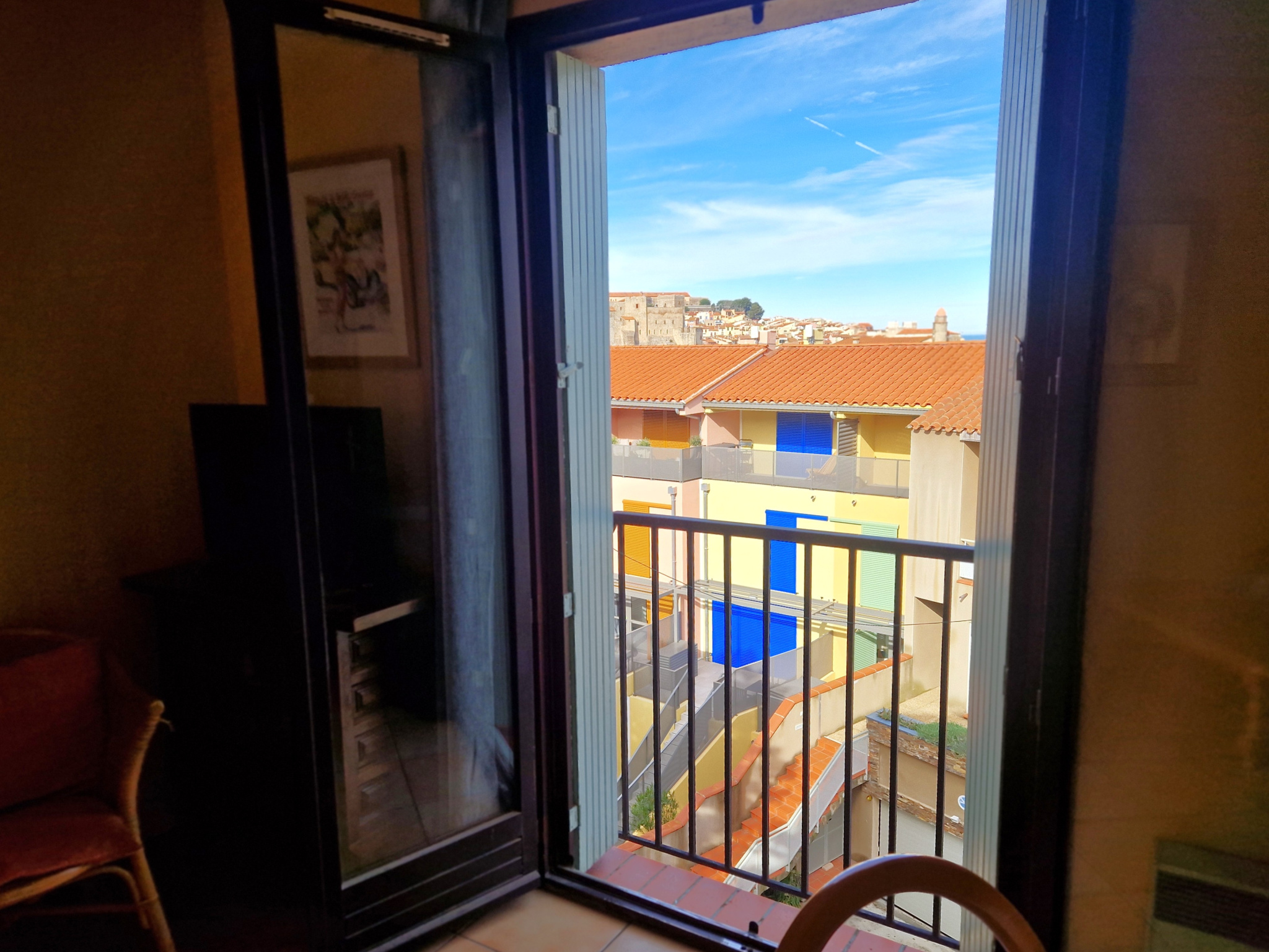 Cet appartement se trouve au 3ème et dernier étage, la pièce de vie est orientée vers la Mer et le Clocher de Collioure, les Dominicains et le Moulin, au calme de l'agitation touristique, et se compose d'une entrée, séjour-salon et cuisine ouverte, une chambre, une salle de bains avec wc. Une cave privative et un parking extérieur privatif.