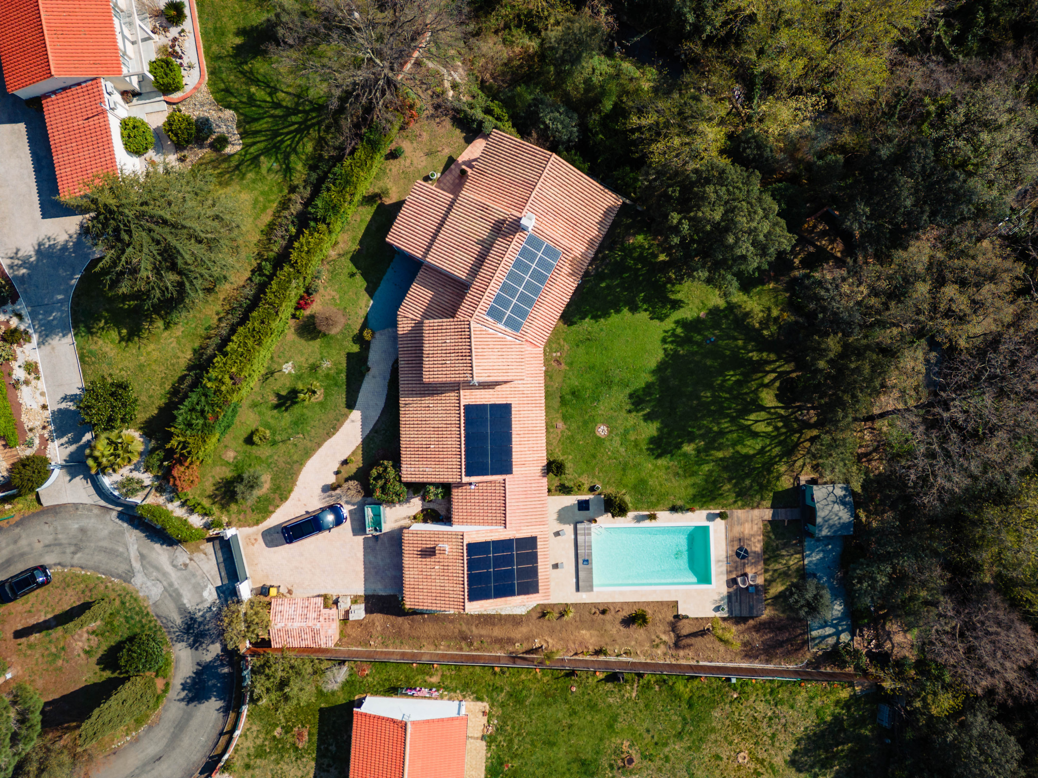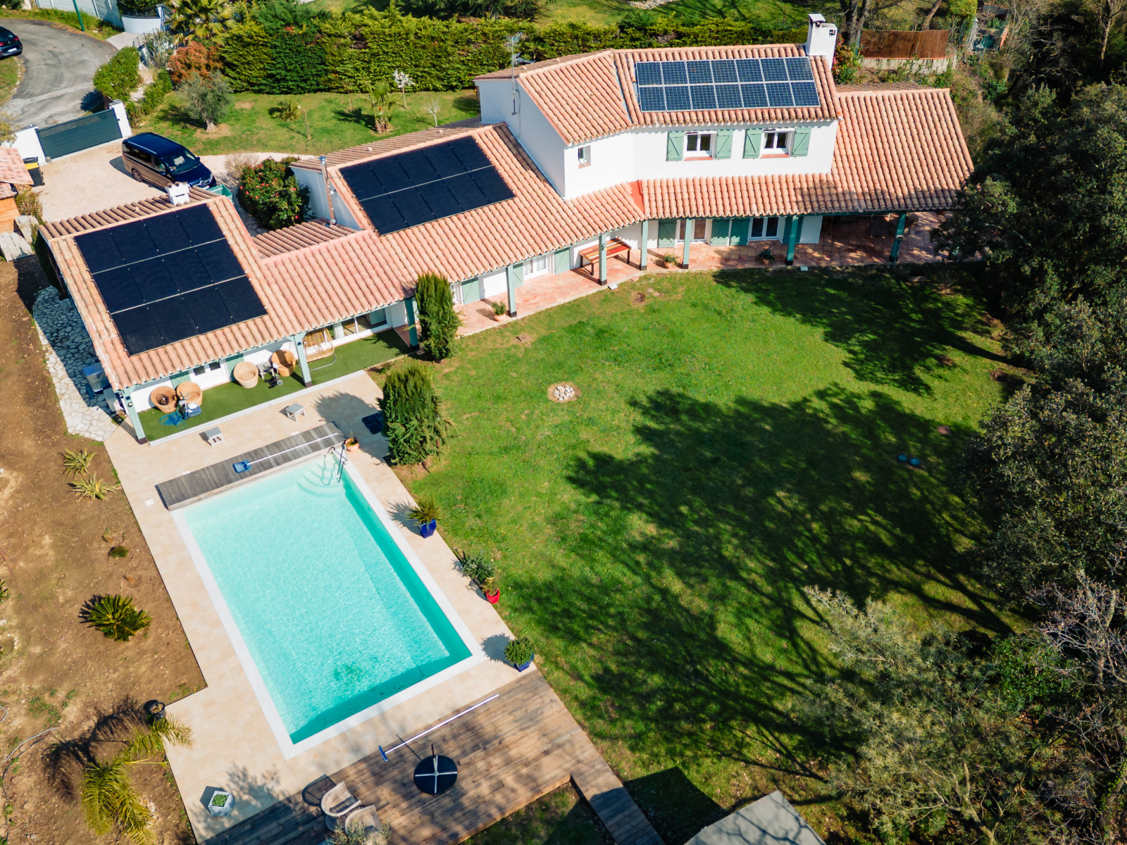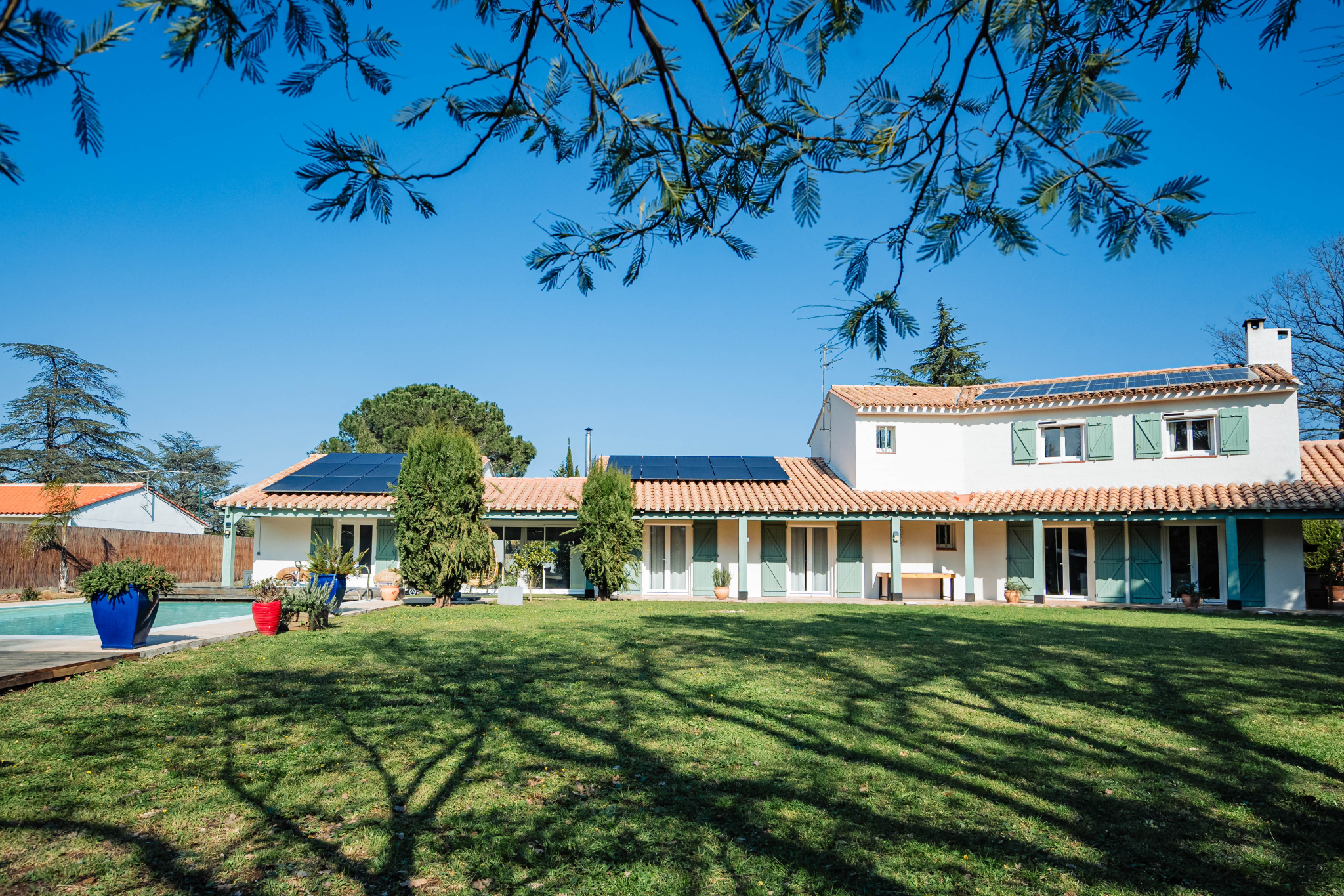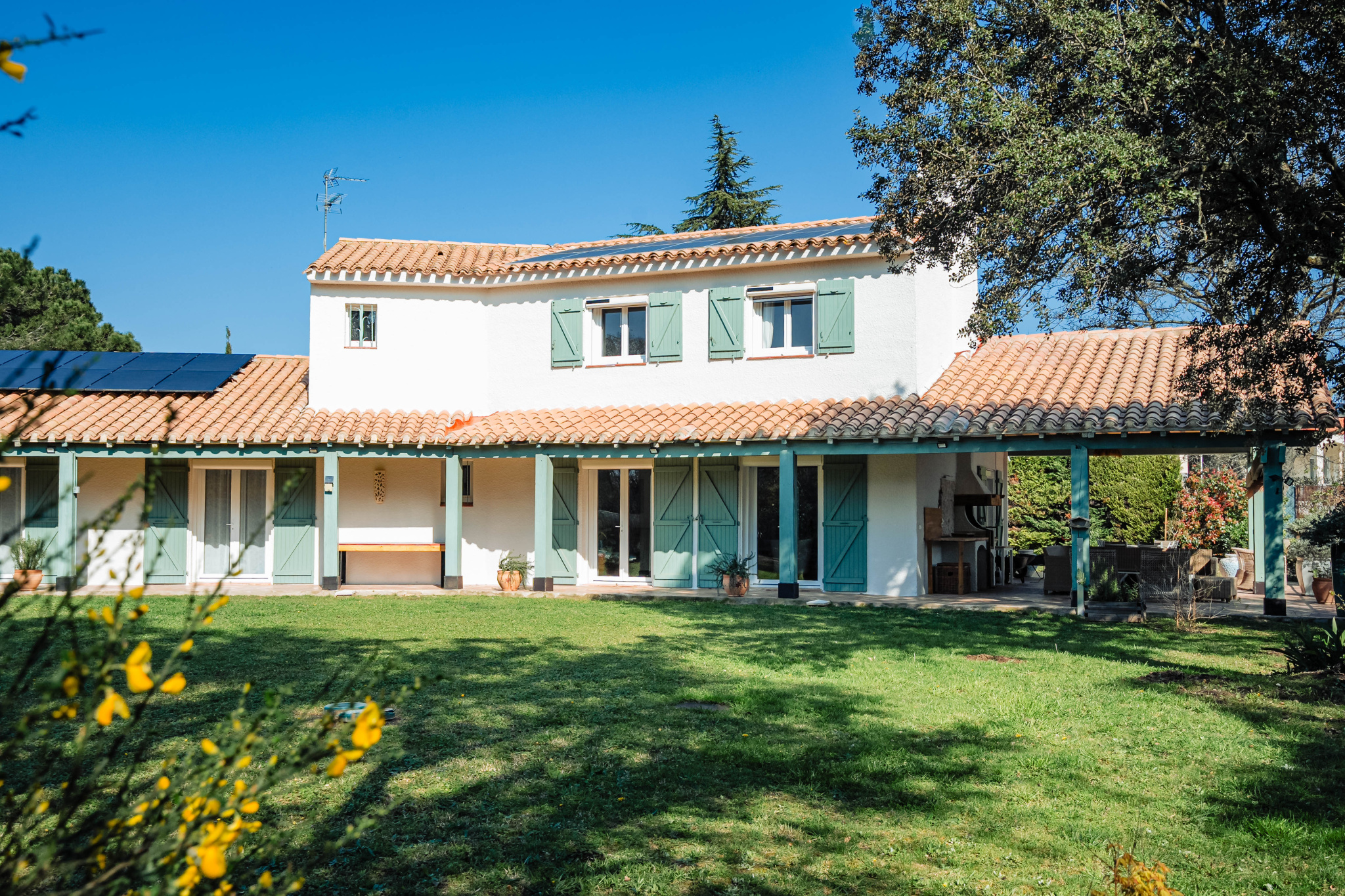 Cette très belle maison allie élégance intemporelle et technologies durables. Grâce à ses installations photovoltaïques, la propriété bénéficie d'une autonomie énergétique remarquable, mariant confort moderne et respect de son environnement.