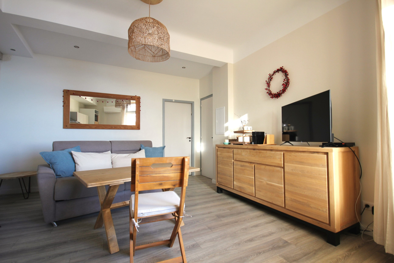 Ce charmant T2, situé dans un cadre exceptionnel, vous offre une pièce principale lumineuse avec cuisine entièrement équipée et un canapé convertible 140x 190. La chambre dispose d’un lit double 160x200 confortable, d'une salle d'eau.