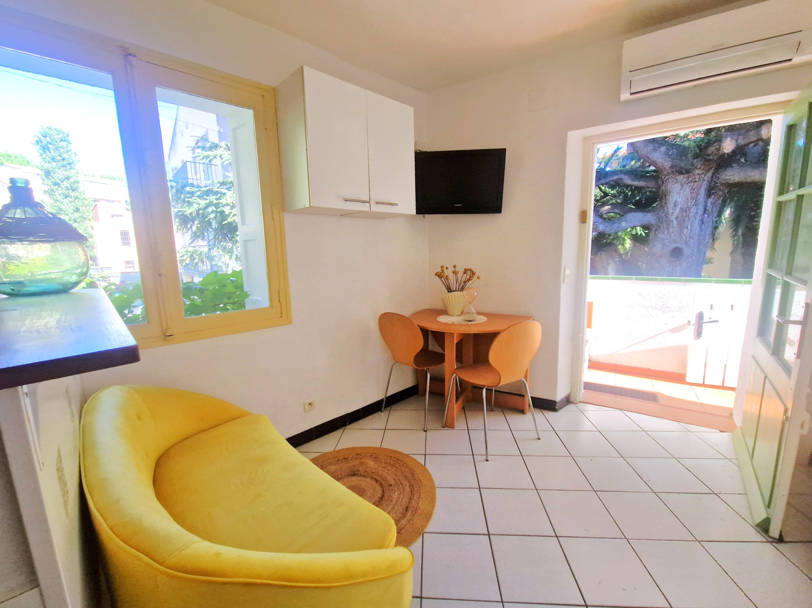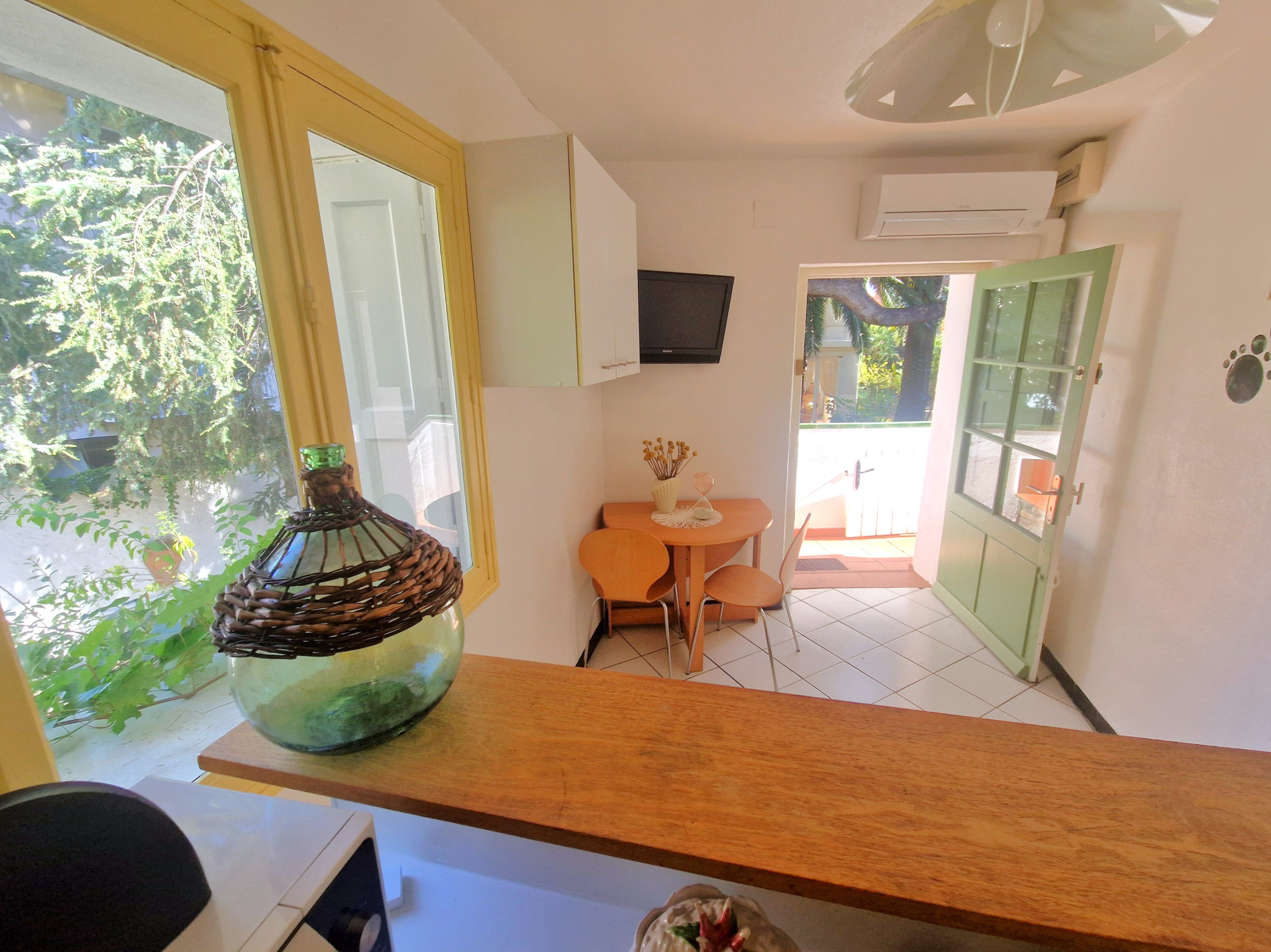 - Au 1er étage : salon-séjour avec cuisine, chambre 1, chambre 2, salle d'eau avec wc. Climatisation réversible.